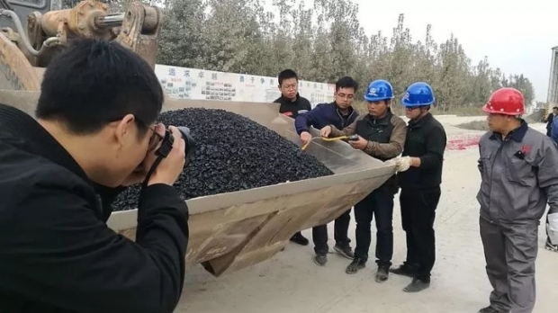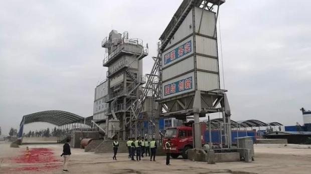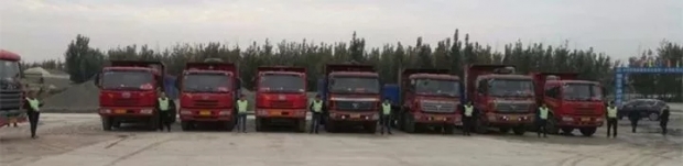 志虎达集团 飞虎运输公司工作人员已经将车辆开至大型沥青拌合站料斗之下,等待着装车上料,开往那等待已久的摊铺路面!